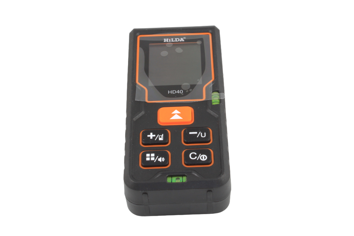 Лазерный дальномер HD-40 - это один из самых функциональных приборов из линейки лазерных рулеток HILDA. Возможности этого профессионального измерительного инструмента удовлетворяют требования пользователей, значительно упрощают процесс измерений, повышая их эффективность, сокращая время выполнения работ. Оснащённый усовершенствованной лазерной системой, HD-40 измеряет расстояния до 40 метров, с его помощью вы легко проведёте все необходимые предварительные измерения. На большом дисплее отображаются результаты измерения и активный режим, а встроенная подсветка помогает работать при ярком освещении. Дальномер выполнен в противоударном, защищенном от пыли корпусе с удобными резиновыми накладками. Экономичен благодаря встроенной системе автоматического отключения лазера. Само устройство полностью отключается, если оно не используется в течение двух с половиной минут. Обладает расширенным набором функций: вычисление суммы или разности длин, площади, объема, недоступного размера по двум точкам (по формуле Пифагора). Измеряет длину, квадратуру, кубатуру, треугольник. В труднодоступных местах для измерения высоты предмета можно замерить расстояние от рулетки напрямую до предмета и диагональ от рулетки до вершины этого изделия и дальномер сам рассчитает высоту.